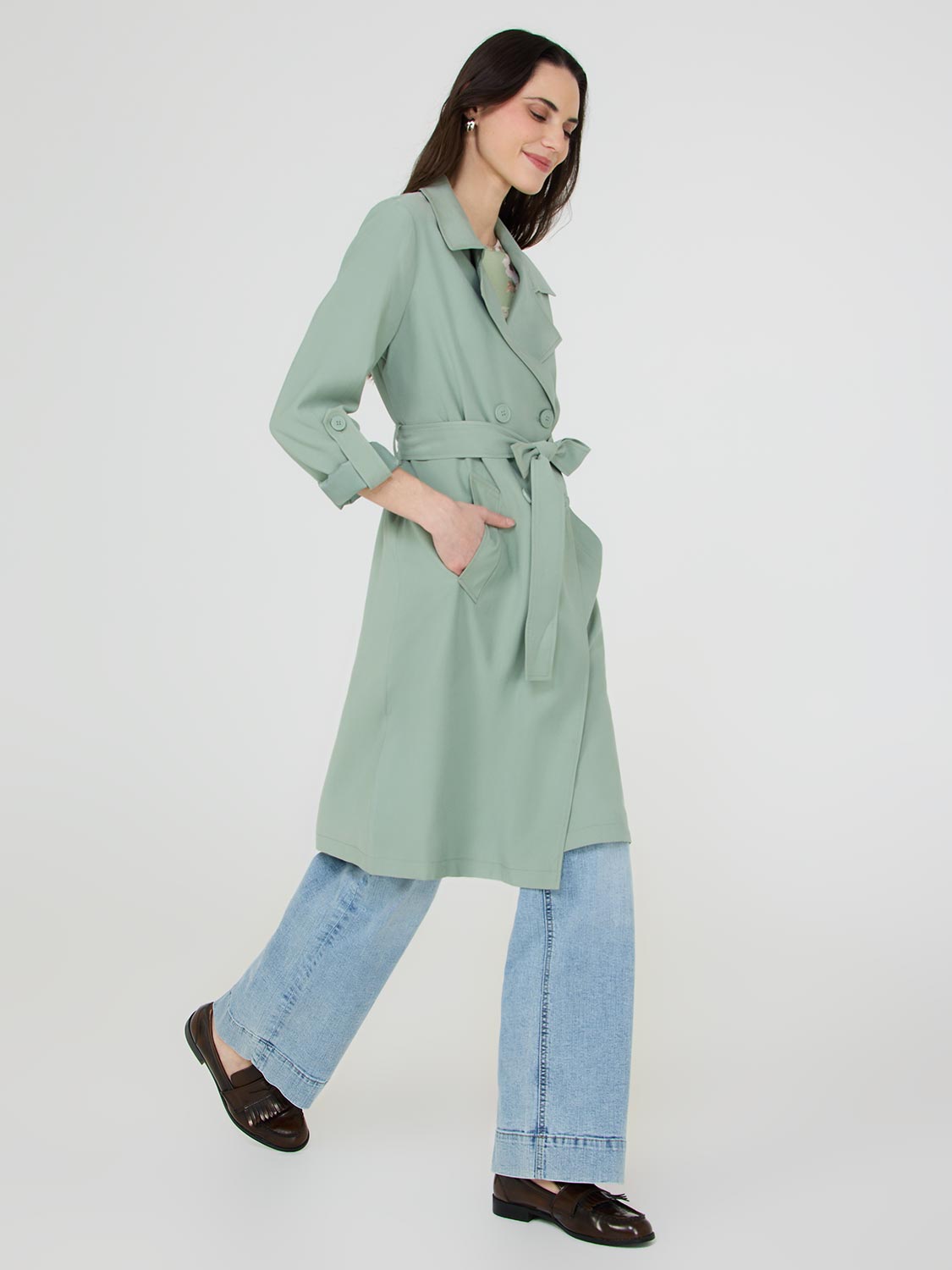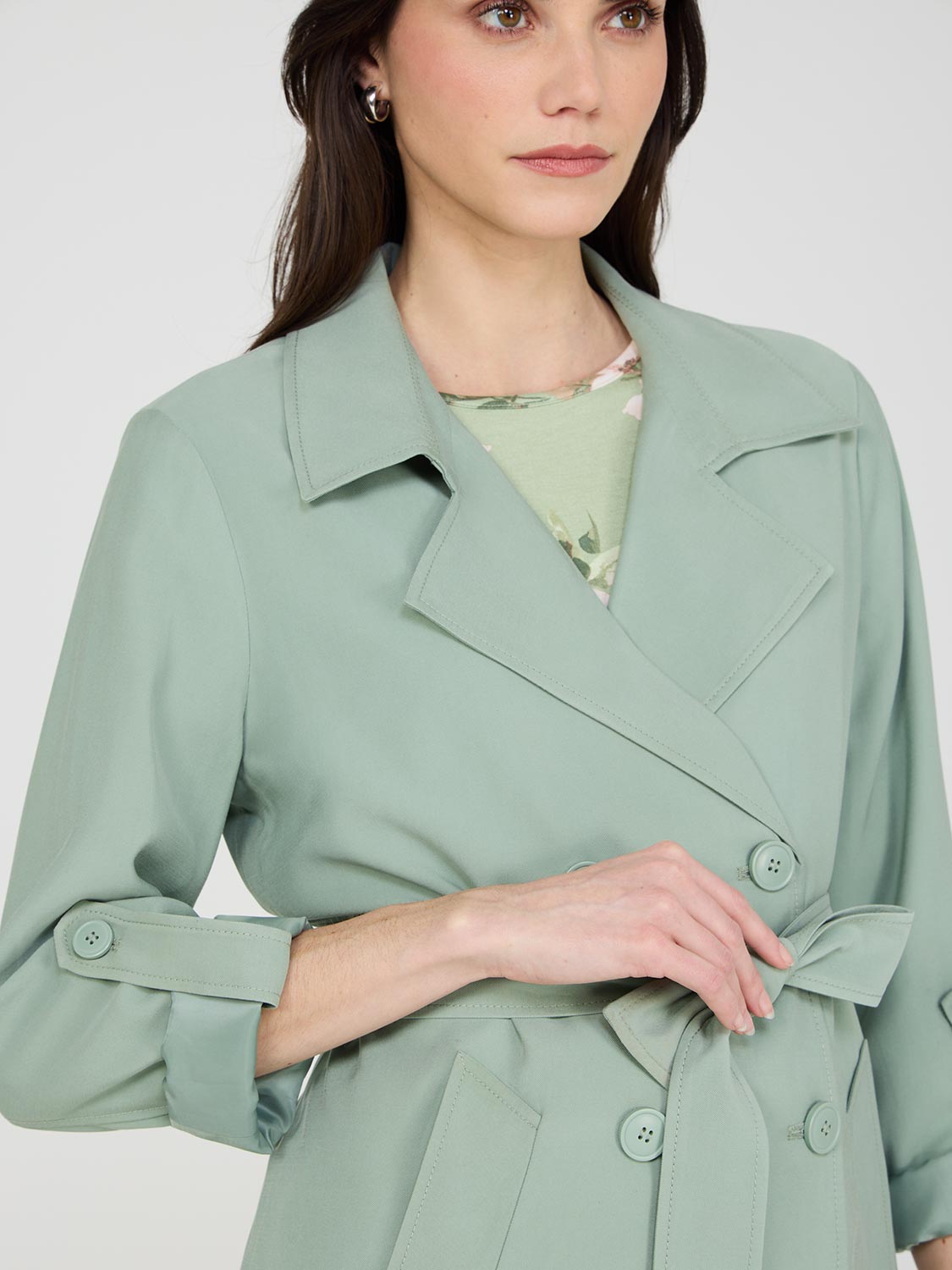 This timeless staple combines classic tailoring with modern versatility. making it a go-to for every season and weather.Woven trench coat Flowy Roll up sleeves 4-buttons Lined Model is wearing size XS Fabric: 92% viscose. 8% polyester Lining: 100% polyester Dry clean