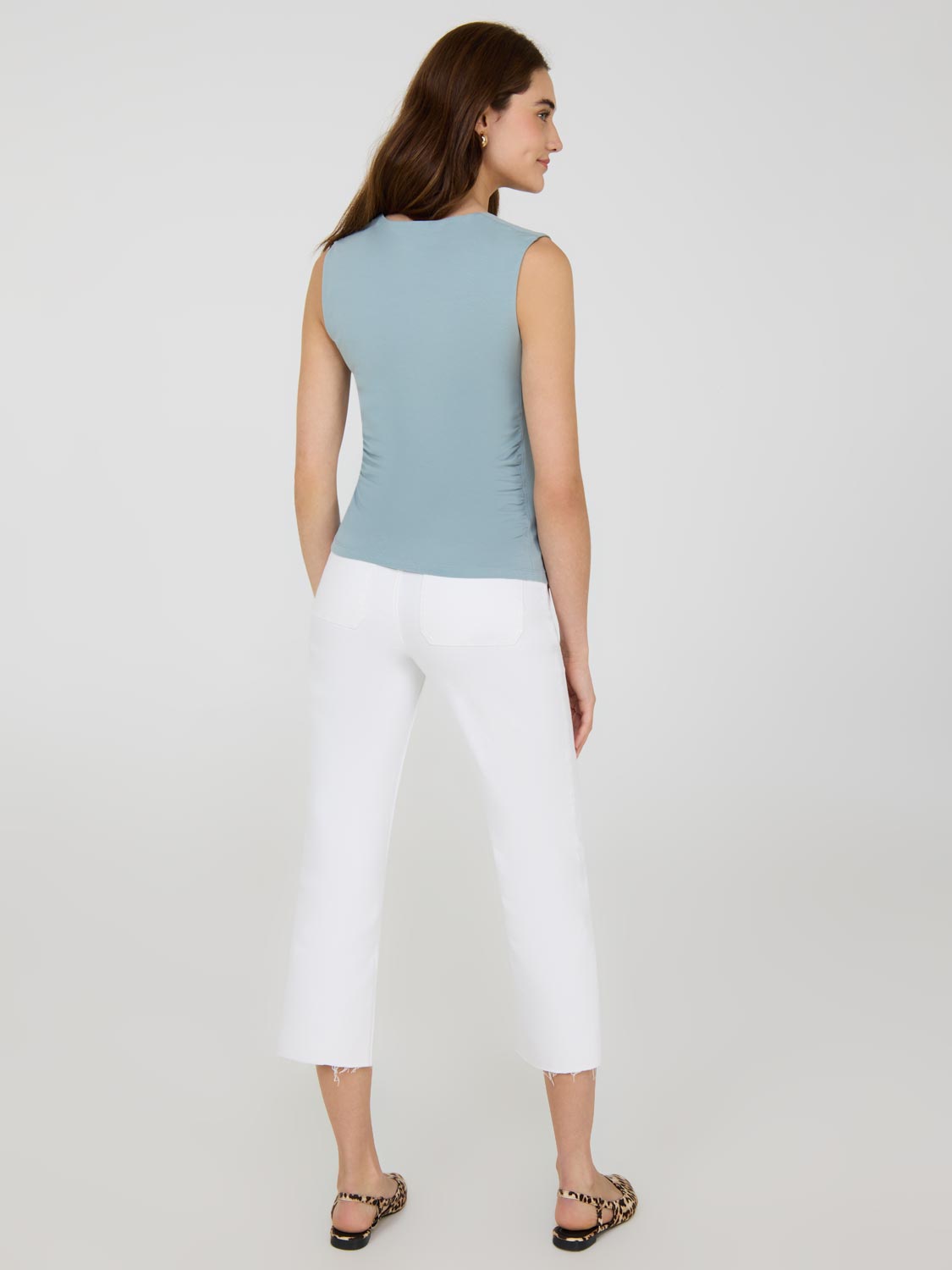 Designed with figure-hugging ruching and a chic square neckline. this sleek sleeveless top is essential for day-to-night dressing.